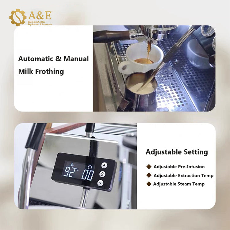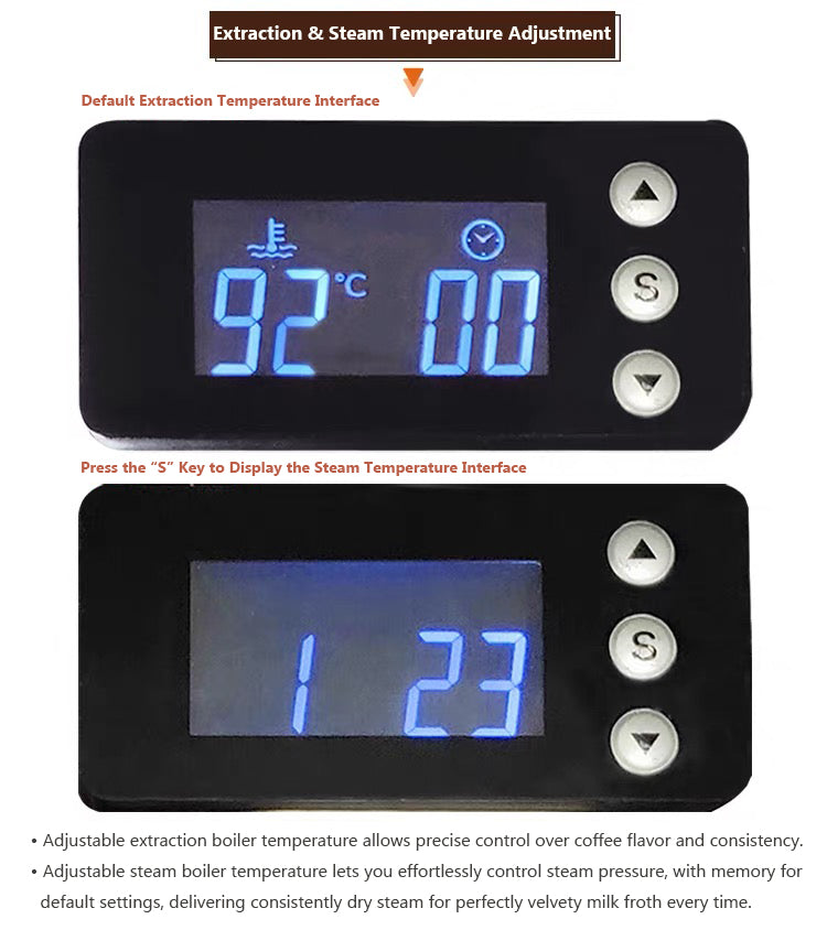*PID temperature control system+adjustable extraction temperature, pre-infusion;