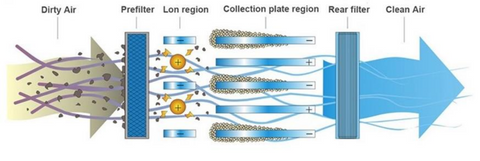 The second way of reducing smoke is through an electrostatic precipitator (ESP). An ESP works by producing an extremely high voltage current that passes on the electrons to the smoke, charging the smoke negatively and allowing magnetism to do its magic in filtering out the ions.