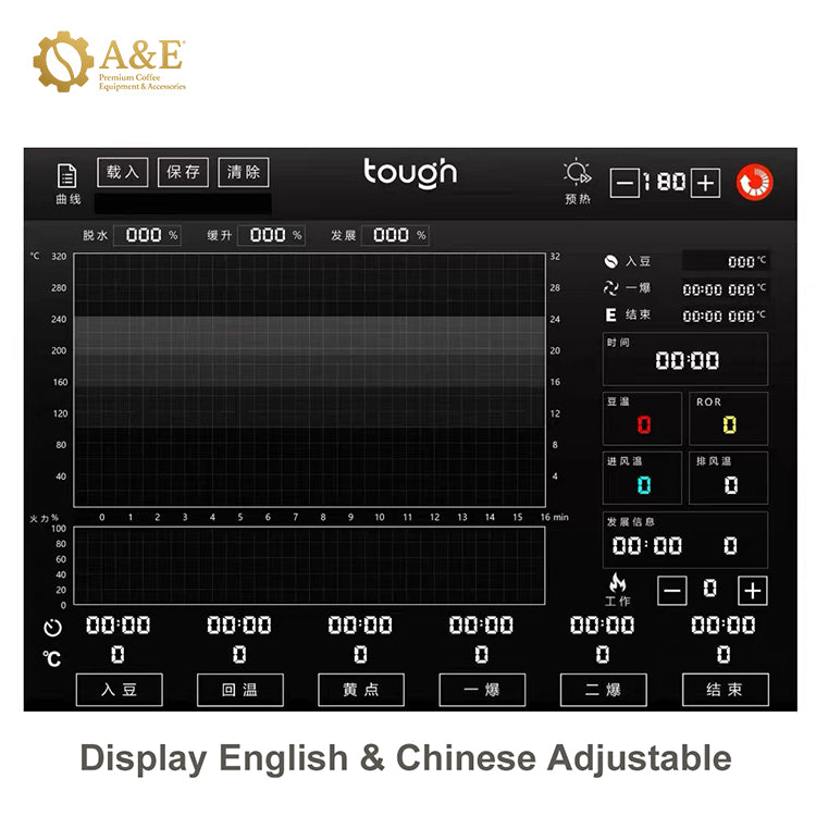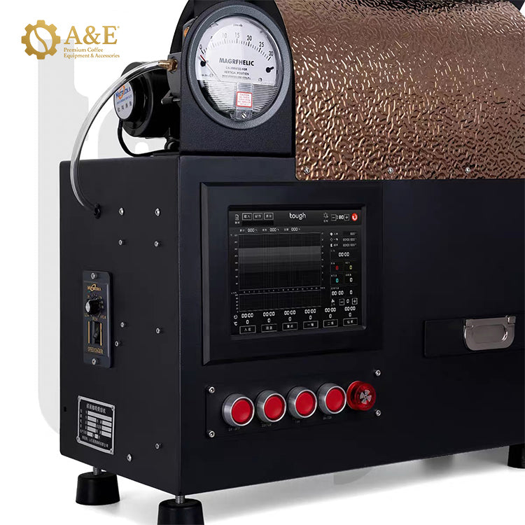 | Accessories | Cooling tray *1, chaff cyclone collector*1, sample spoon*1, exhaust duct*1, chimney pipe*1, gas hose*1, pressure regulator*1, LED light*1, pipe clamps*4, T-wrench*1, Allen Wrench Set*1, power cord 1*, Bearings*2, User Manual*1 |