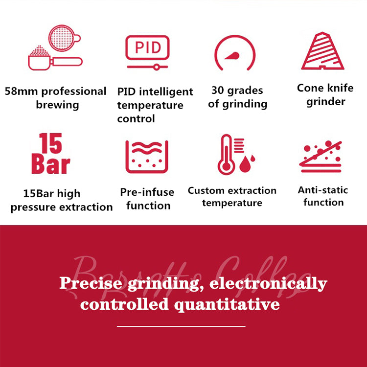 *Equipped: coffee handle(dual spouts)*1, single filter basket*1, double filter basket*1, coffee tamper*1, milk pitcher*1, maintenance tool*1, user manual*1